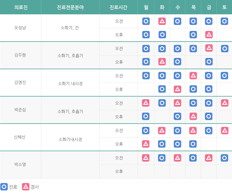 대학병원 외래교수 출신의 6명의 내과 전문의가 진료를 담당하여 대학병원에 가지 않고도 편리하게 대학병원 수준의 진료를 받으실 수 있습니다.